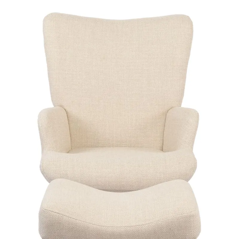 Πολυθρόνα-μπερζέρα με υποπόδιο Gerlina κρεμ ύφασμα με πόδι σε φυσική απόχρωση
