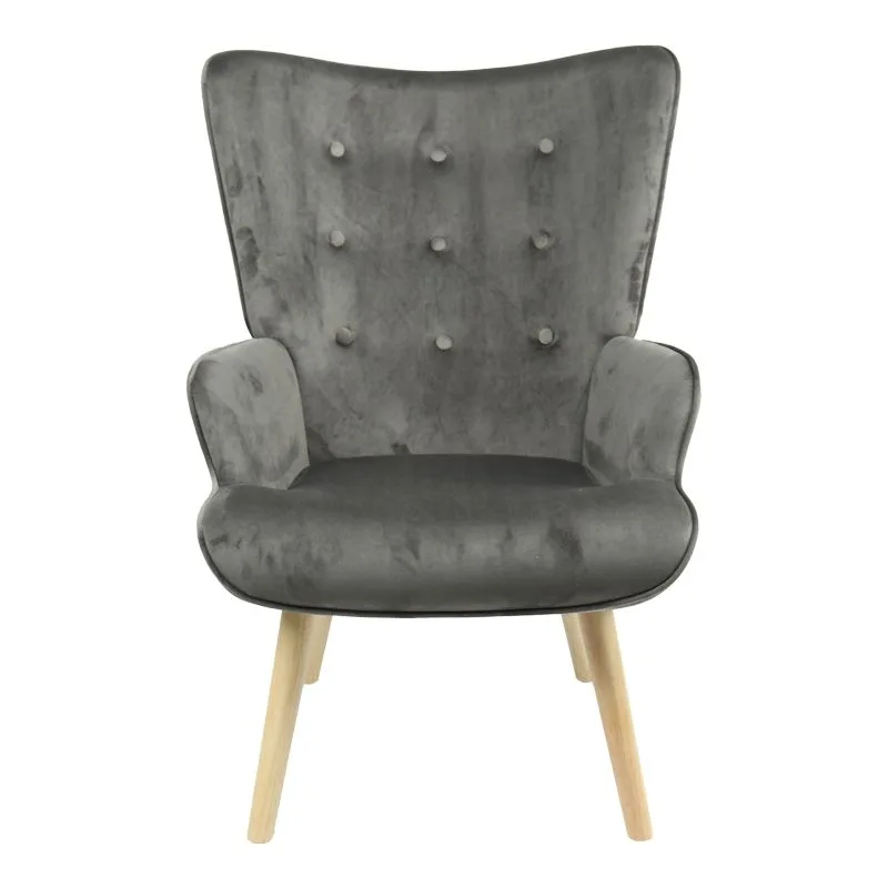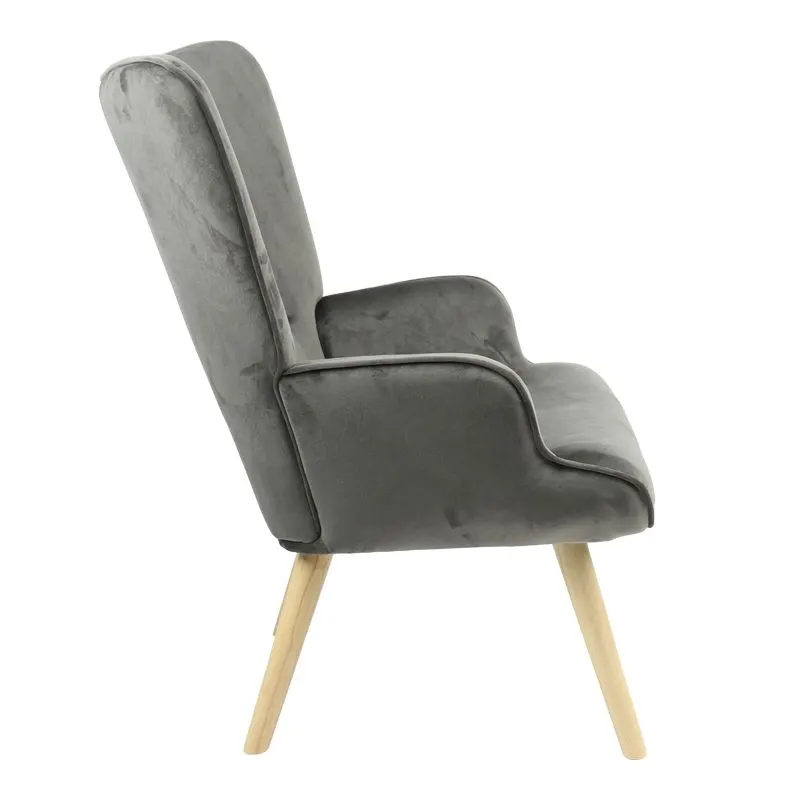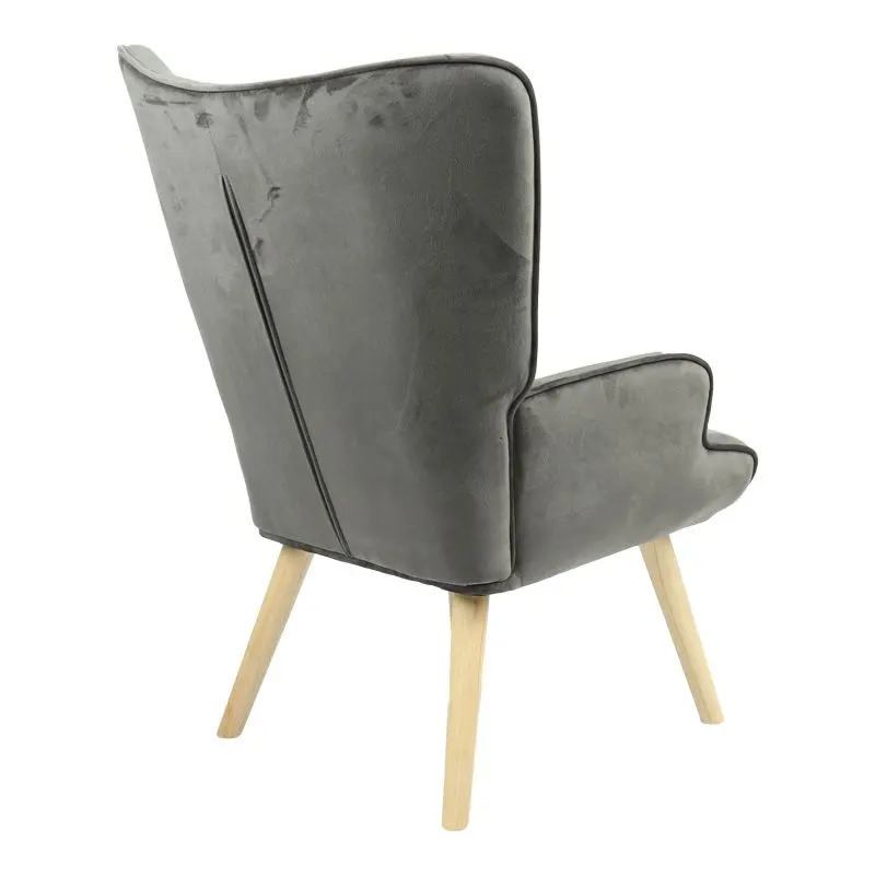 Πολυθρόνα Fluffy βελούδο ανθρακί-φυσικό πόδι 75x69x96εκ