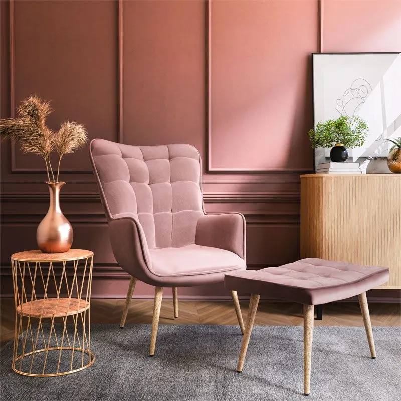 Πολυθρόνα Maddison με υποπόδιο-μαξιλάρι βελούδο σάπιο μήλο-φυσικό