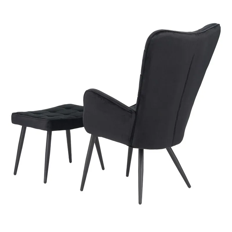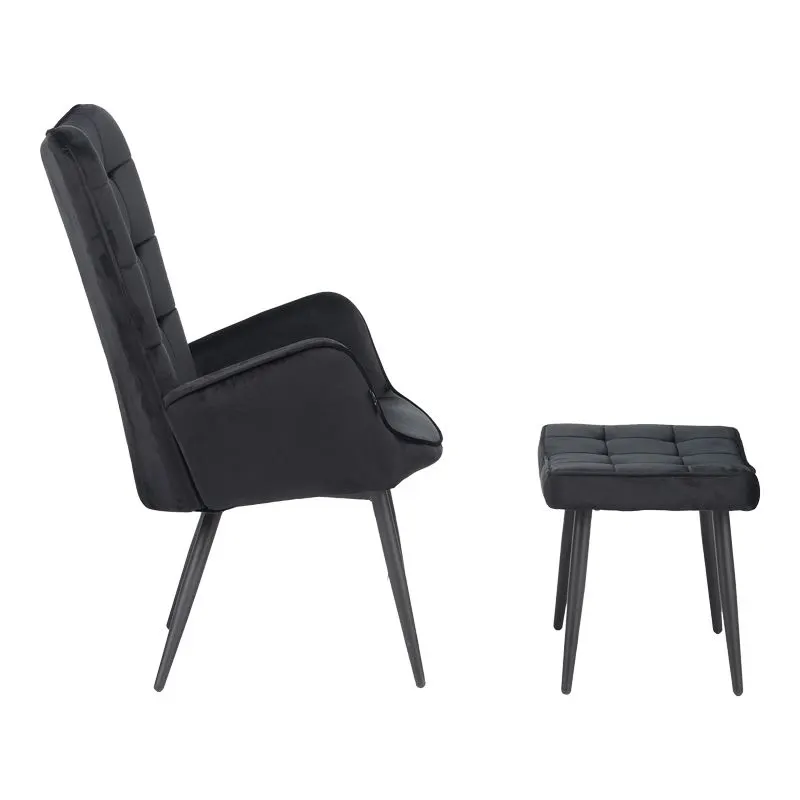 Πολυθρόνα με υποπόδιο Dorita βελούδο μαύρο-πόδι μαύρο μέταλλο