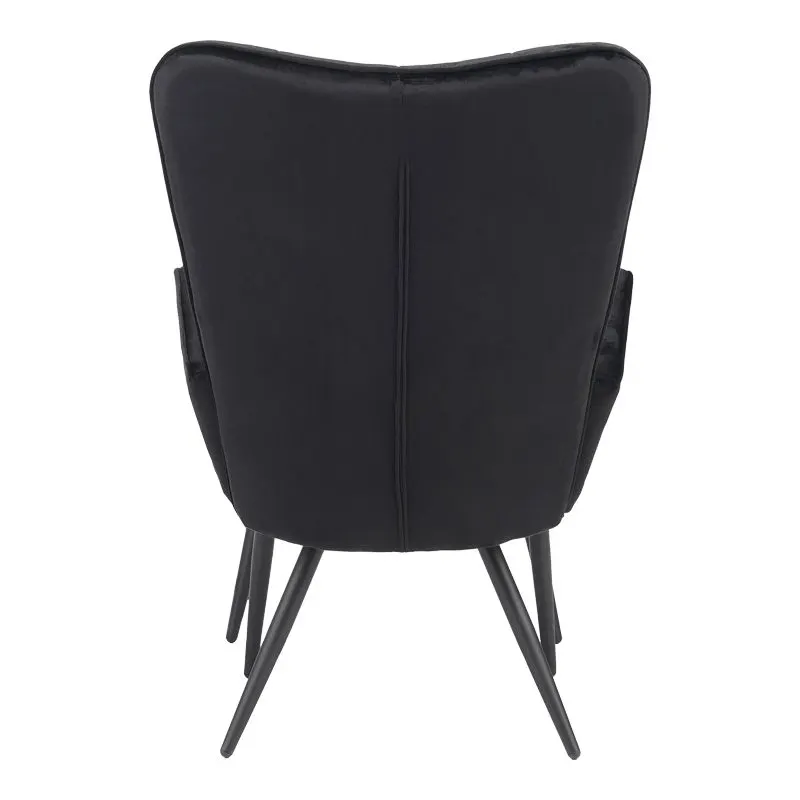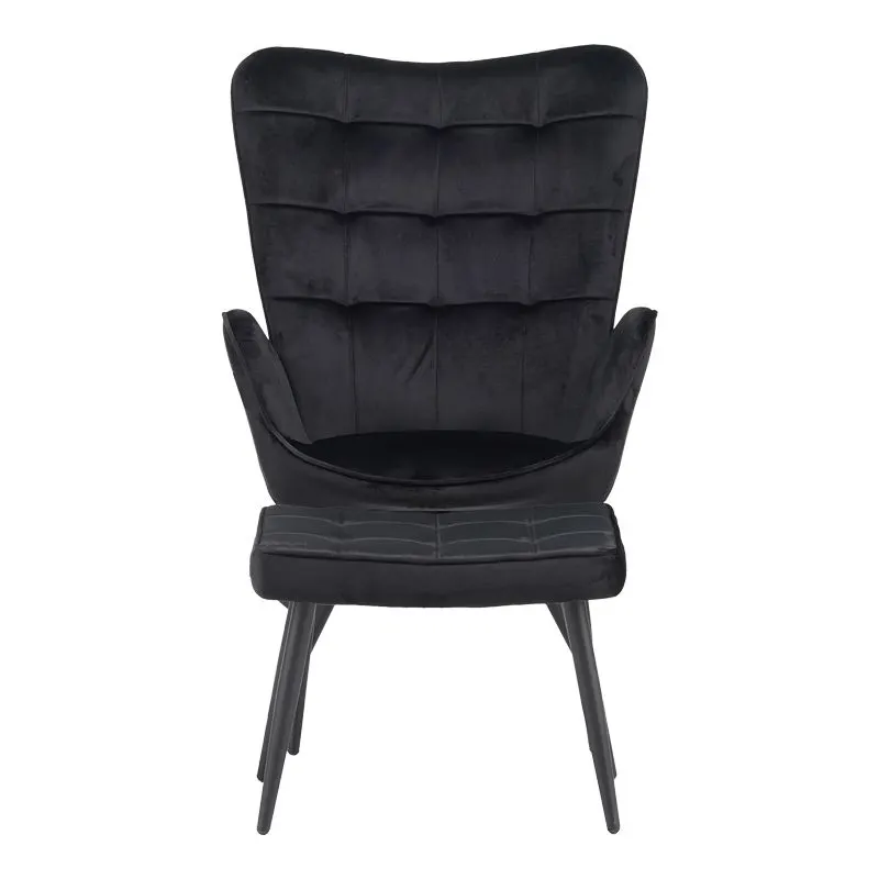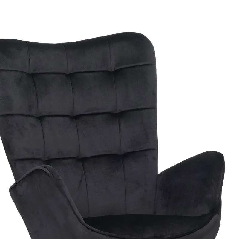 Πολυθρόνα με υποπόδιο Dorita βελούδο μαύρο-πόδι μαύρο μέταλλο 68.5x76x103εκ