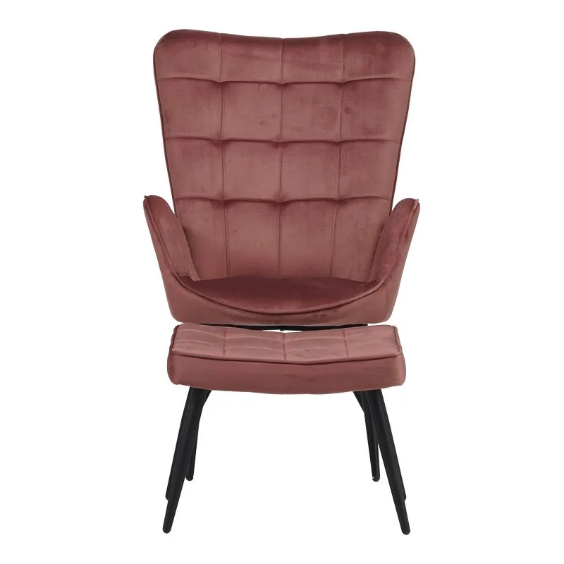 Πολυθρόνα με υποπόδιο Dorita βελούδο σάπιο μήλο-πόδι μαύρο μέταλλο 68.5x76x103εκ