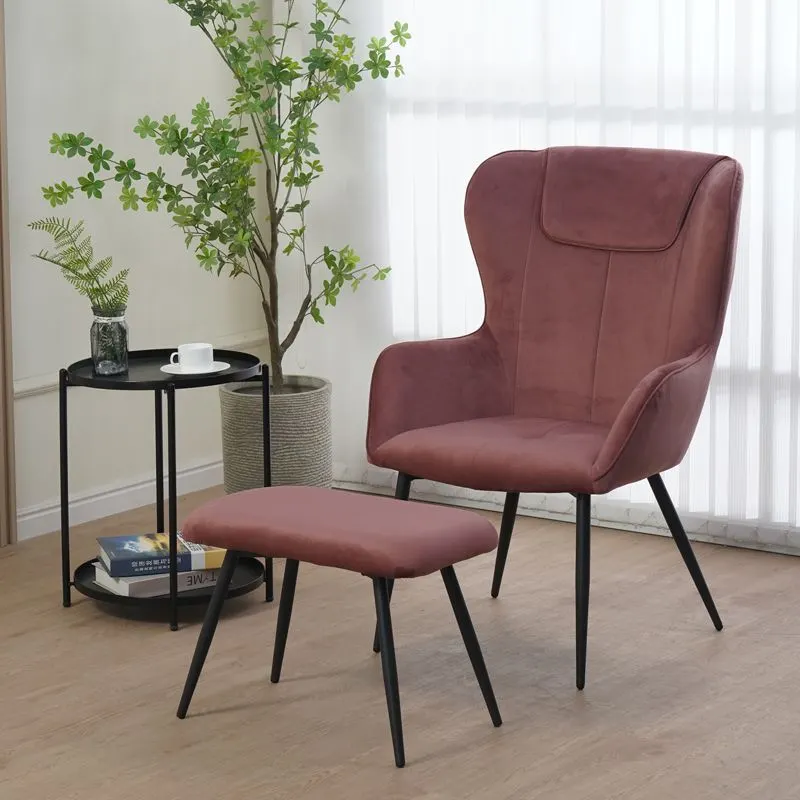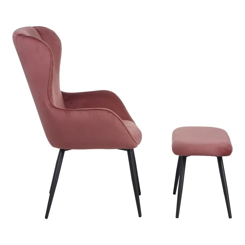 Αυτή η κομψή πολυθρόνα με το συνδυασμό του βελούδου και του μαύρου μεταλλικού σκελετού προσθέτει μια πινελιά πολυτέλειας σε κάθε χώρο. Το συνοδευτικό σκαμπό συμπληρώνει τέλεια το σετ και μπορεί να χρησιμοποιηθεί ως υποπόδιο ή ως επιπλέον καθιστικό.