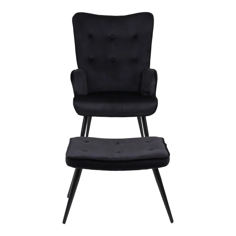 Πολυθρόνα με υποπόδιο Siella μαύρο βελούδο και μαύρο μέταλλο πόδι