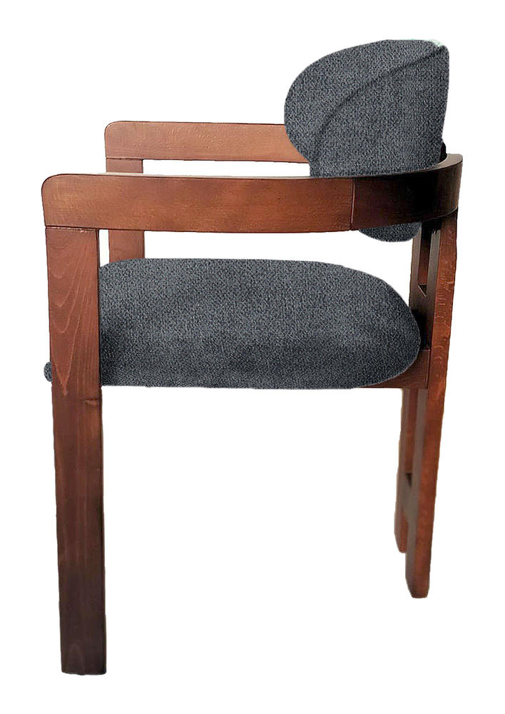 Ξύλινη πολυθρόνα με πρωτότυπο και ιδιαίτερο σχεδιασμό, δομημένη από δύο ενωμένα στοιχεία σε σχήμα Π στην πλάτη, που προσδίδουν μοναδική αισθητική και στιβαρότητα. Η πολυθρόνα διαθέτει μαξιλάρια τόσο στην πλάτη όσο και στο κάθισμα, εξασφαλίζοντας άνεση και εργονομία. Η κατασκευή της είναι από μασίφ ξύλο οξιάς σε ζεστή απόχρωση καρυδιάς, που αναδεικνύει τη φυσική υφή και την ποιότητα του υλικού, προσφέροντας μια διαχρονική και ζεστή εμφάνιση στον χώρο. Ιδανική επιλογή για όσους αναζητούν ένα συνδυασμό πρωτοτυπίας, άνεσης και φυσικού υλικού.