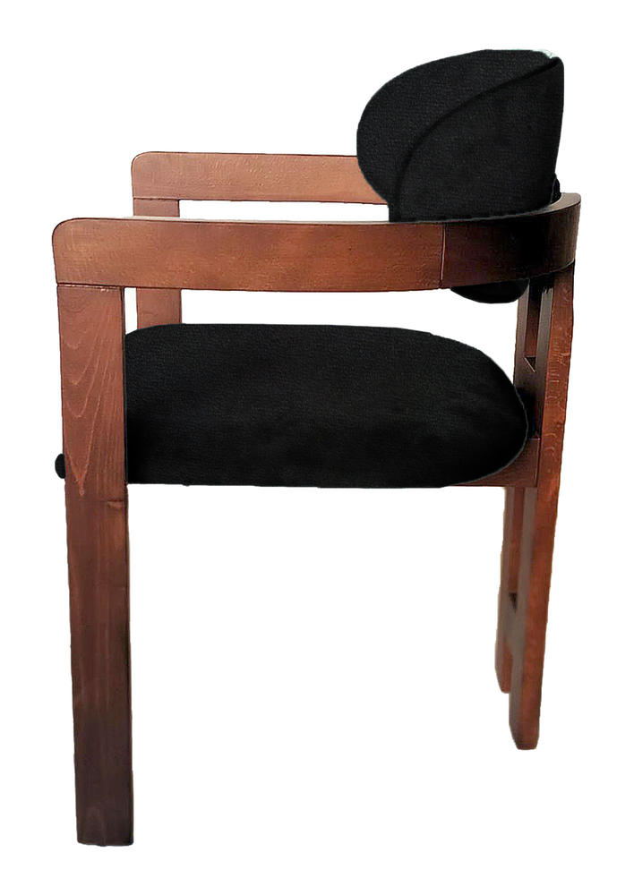 Πολυθρόνα NOMAD από ξύλο μασίφ οξιά σε καρυδί απόχρωση με επένδυση σε μαύρο ύφασμα.