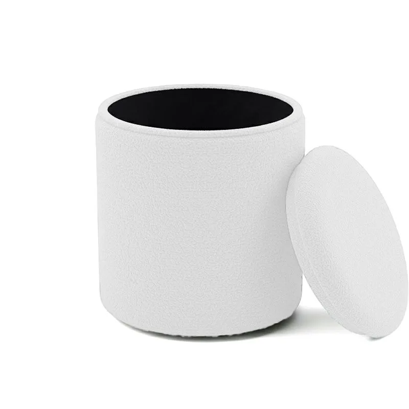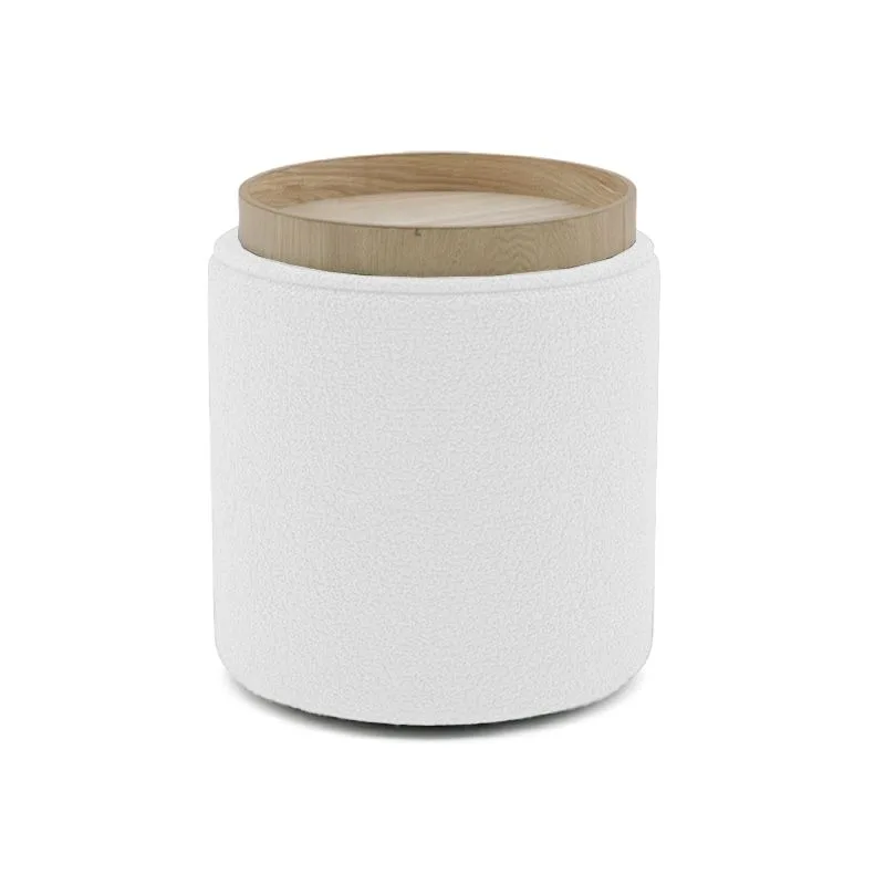 Σκαμπό-μπαούλο Batur μπουκλέ ύφασμα σε λευκή απόχρωση Φ34×38εκ