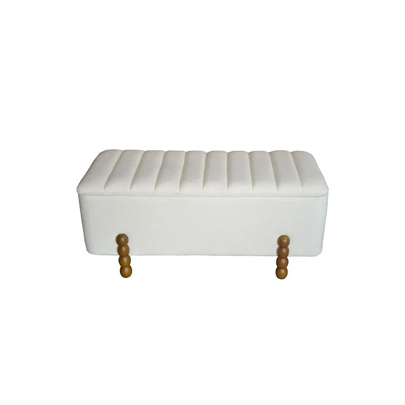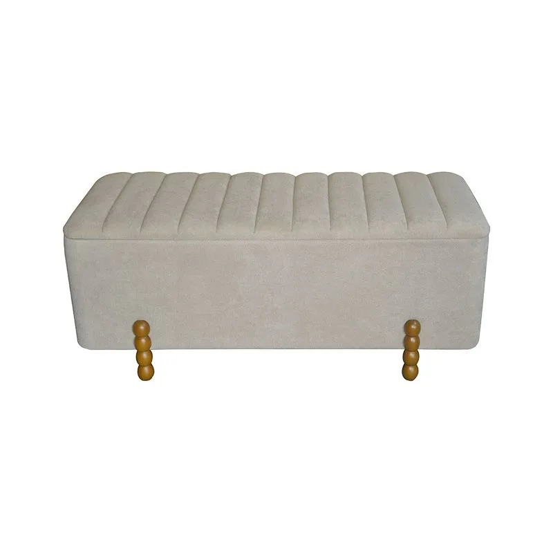 Σκαμπό μπαούλο Daph σετ 2 τεμ βελούδο σε μπεζ και λευκή απόχρωση