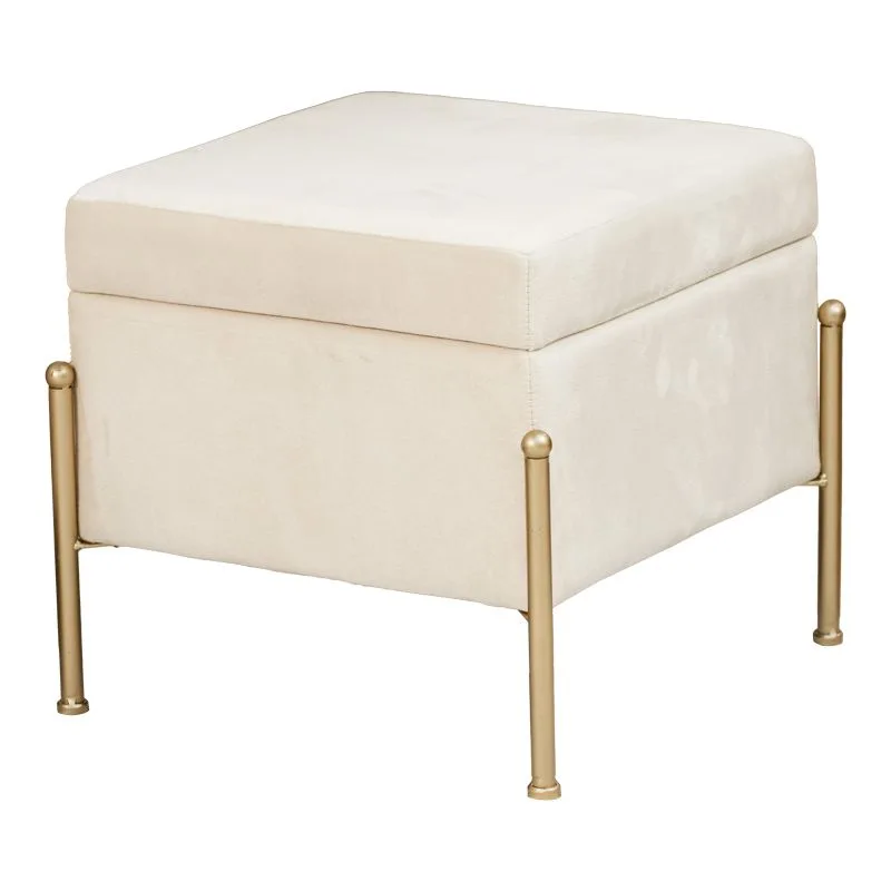 Σκαμπό-μπαούλο Panton βελούδο κρεμ-χρυσό 40x40x36,5εκ