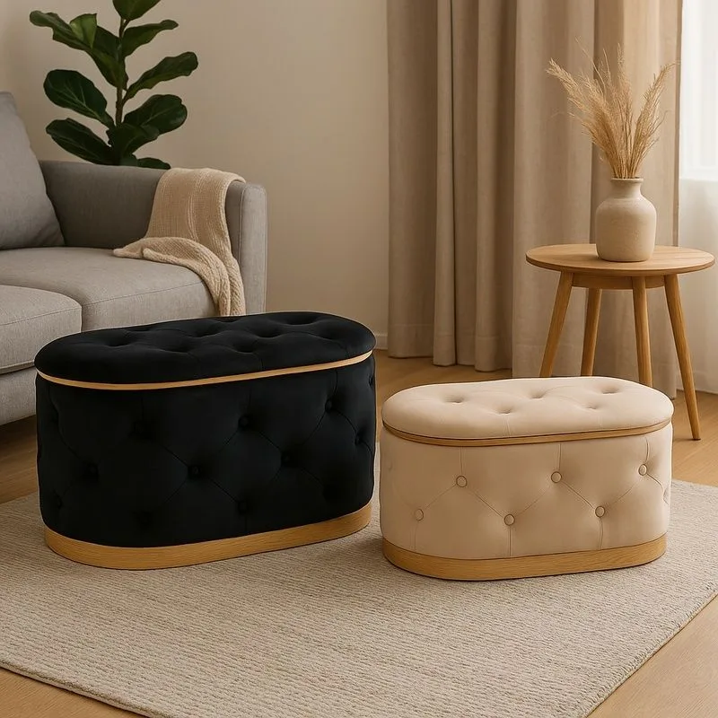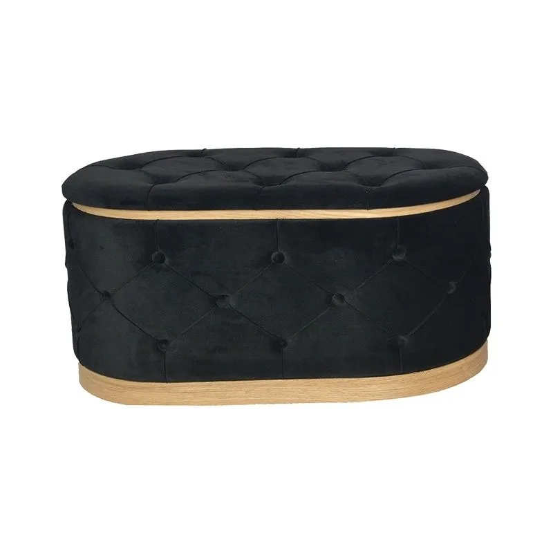 Σκαμπό μπαούλο Royel σετ 2 τεμ βελούδο σε μαύρη και μπεζ απόχρωση