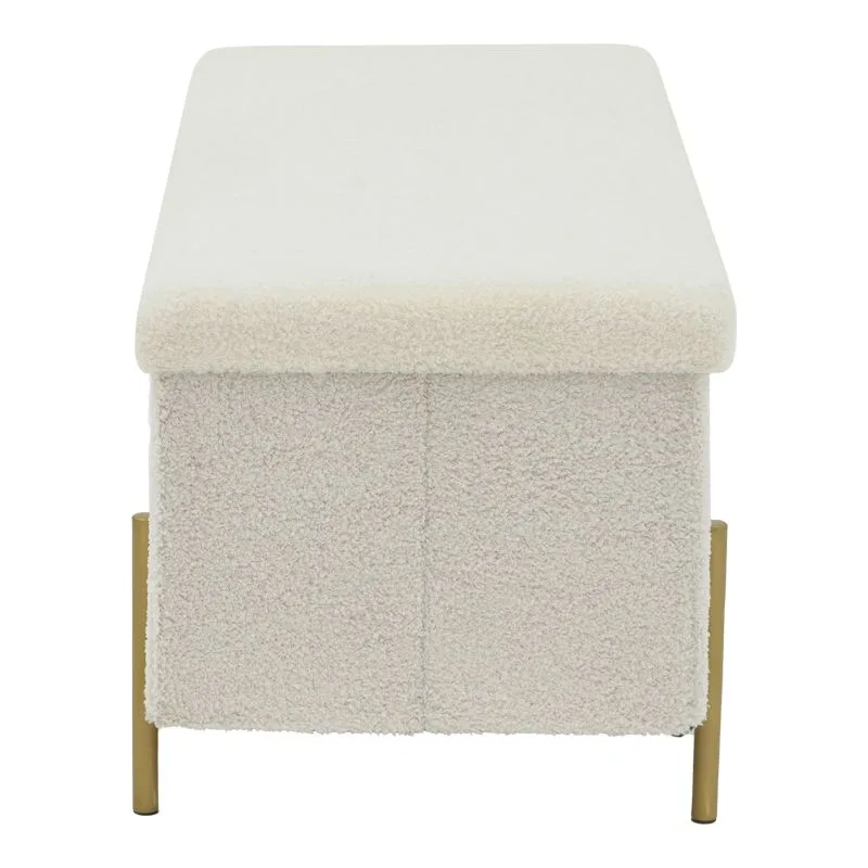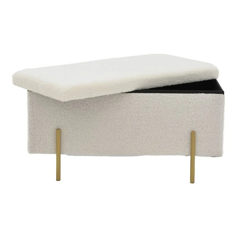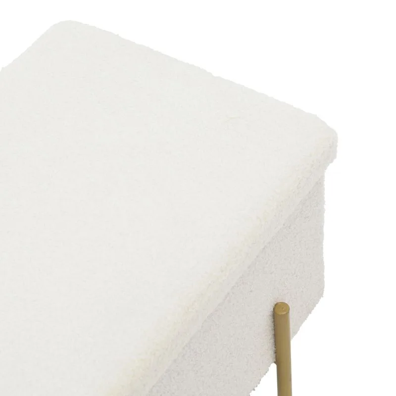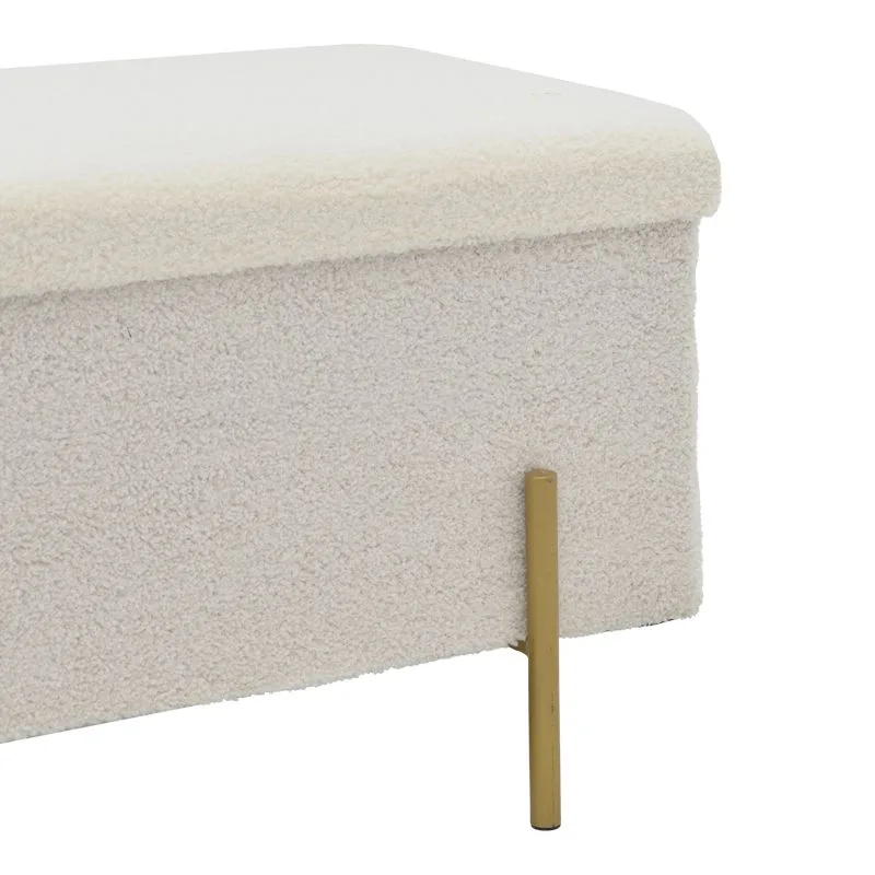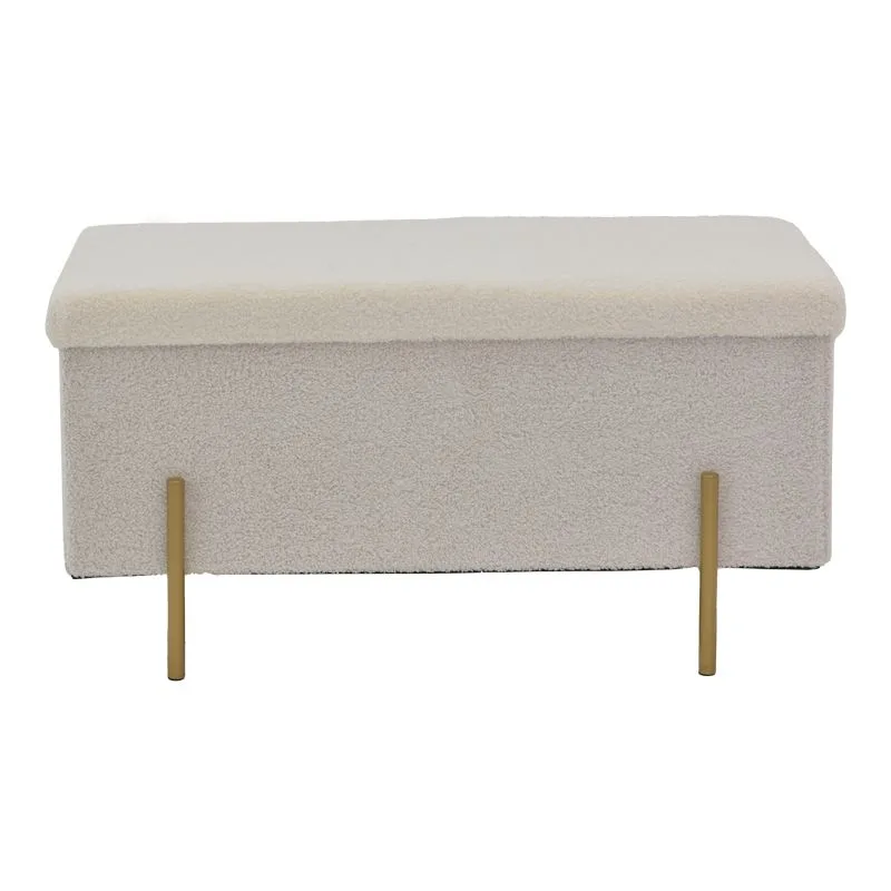 Σκαμπό-μπαούλο Ziwel μπουκλέ λευκό-χρυσό 80x40x40εκ