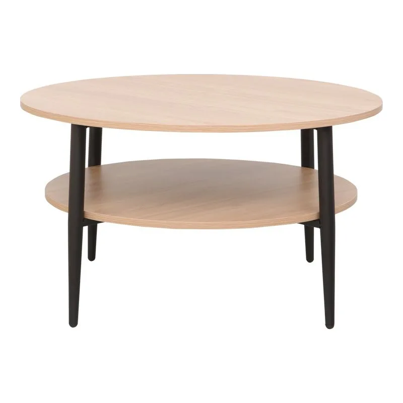 Τραπέζι σαλονιού Kody σε φυσική απόχρωση με μαύρα μεταλλικά πόδια Φ80×45εκ