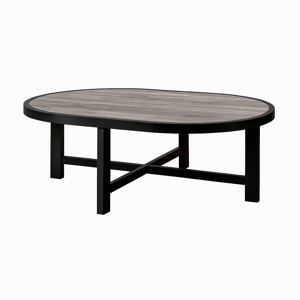 Η επιφάνεια από Mελαμίνη υψηλής αντοχής σε σταχτί απόχρωση δίνει χαρακτήρα και ανθεκτικότητα, ενώ ο μεταλλικός σκελετός εξασφαλίζει σταθερότητα και αντοχή στο χρόνο. Ο κυκλικός σχεδιασμός το καθιστά ιδανικό για κάθε σαλόνι, προσφέροντας λειτουργικότητα χωρίς αιχμηρές γωνίες.