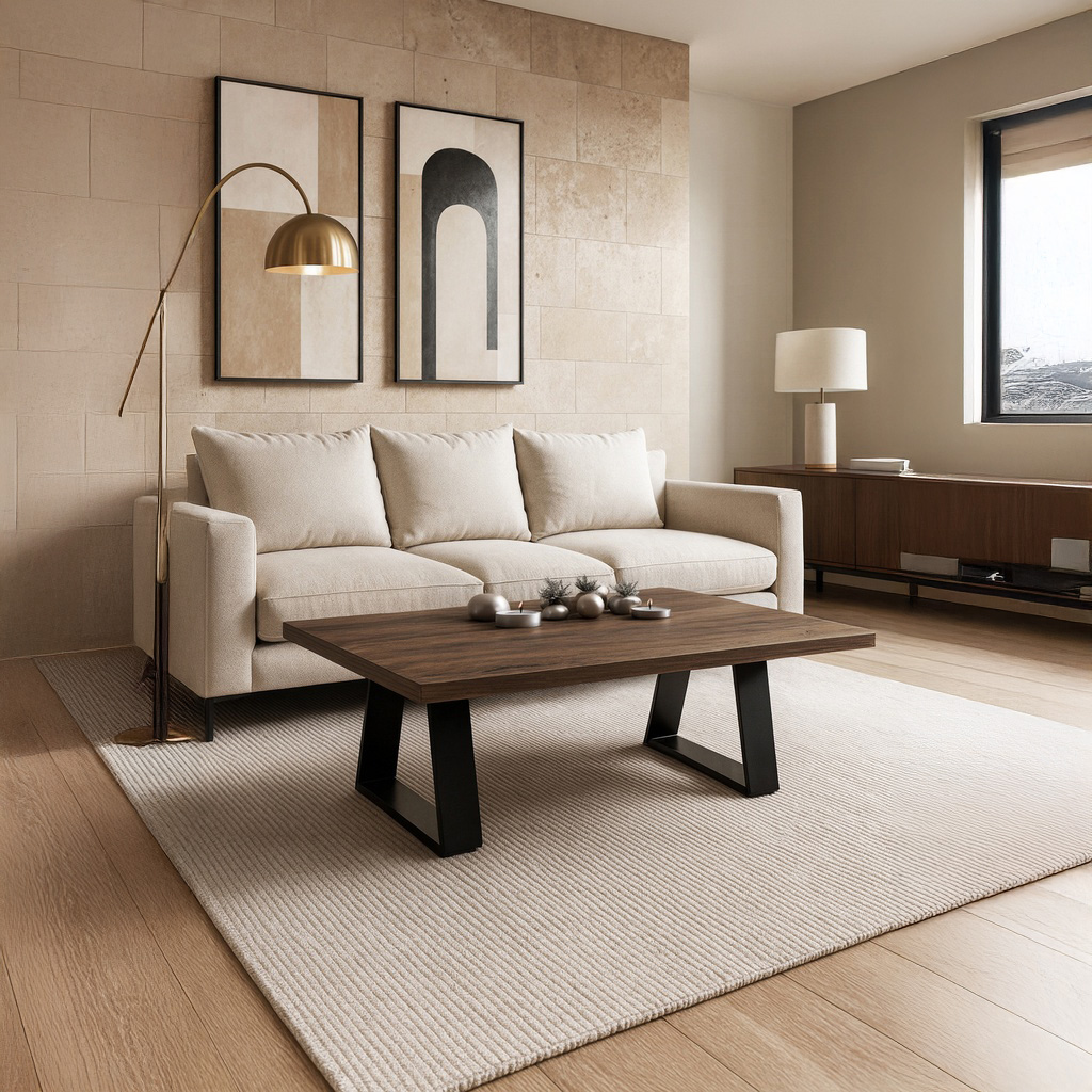 Αναδείξτε την αισθητική του χώρου σας με αυτό το κομψό και σύγχρονο τραπεζάκι σαλονιού. Η επιφάνειά του είναι κατασκευασμένη από μελαμίνη υψηλής ποιότητας, προσφέροντας μεγαλύτερη αντοχή στην καθημερινή χρήση. Το τραπέζι στηρίζεται σε δύο μεταλλικές βάσεις βαμμένες σε μαύρο ματ χρώμα, που του χαρίζουν σταθερότητα και μοντέρνο χαρακτήρα.