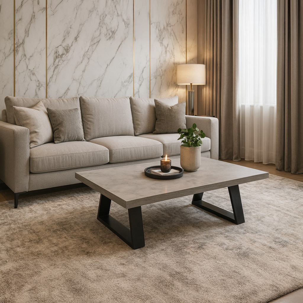 ΤΡΑΠΕΖΙ ΣΑΛΟΝΙΟΥ TRIVIO ΜΕ ΜΕΤΑΛΛΙΚΟ ΣΚΕΛΕΤΟ & ΕΠΙΦΑΝΕΙΑ ΑΠΟ ΜΕΛΑΜΙΝΗ ΤΥΠΟΥ ΤΣΙΜΕΝΤΟ ΑΝΟΙΧΤΟ