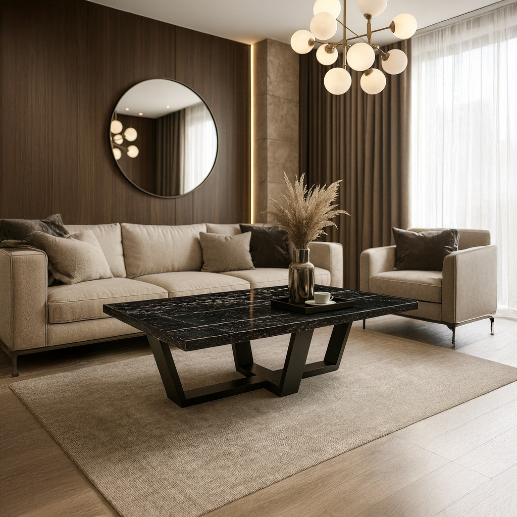 ΤΡΑΠΕΖΙ ΣΑΛΟΝΙΟΥ RIVA ΜΕ ΜΕΤΑΛΛΙΚΟ ΣΚΕΛΕΤΟ & ΕΠΙΦΑΝΕΙΑ ΑΠΟ ΜΕΛΑΜΙΝΗ ΣΕ ΜΑΥΡΟ ΜΑΡΜΑΡΟ