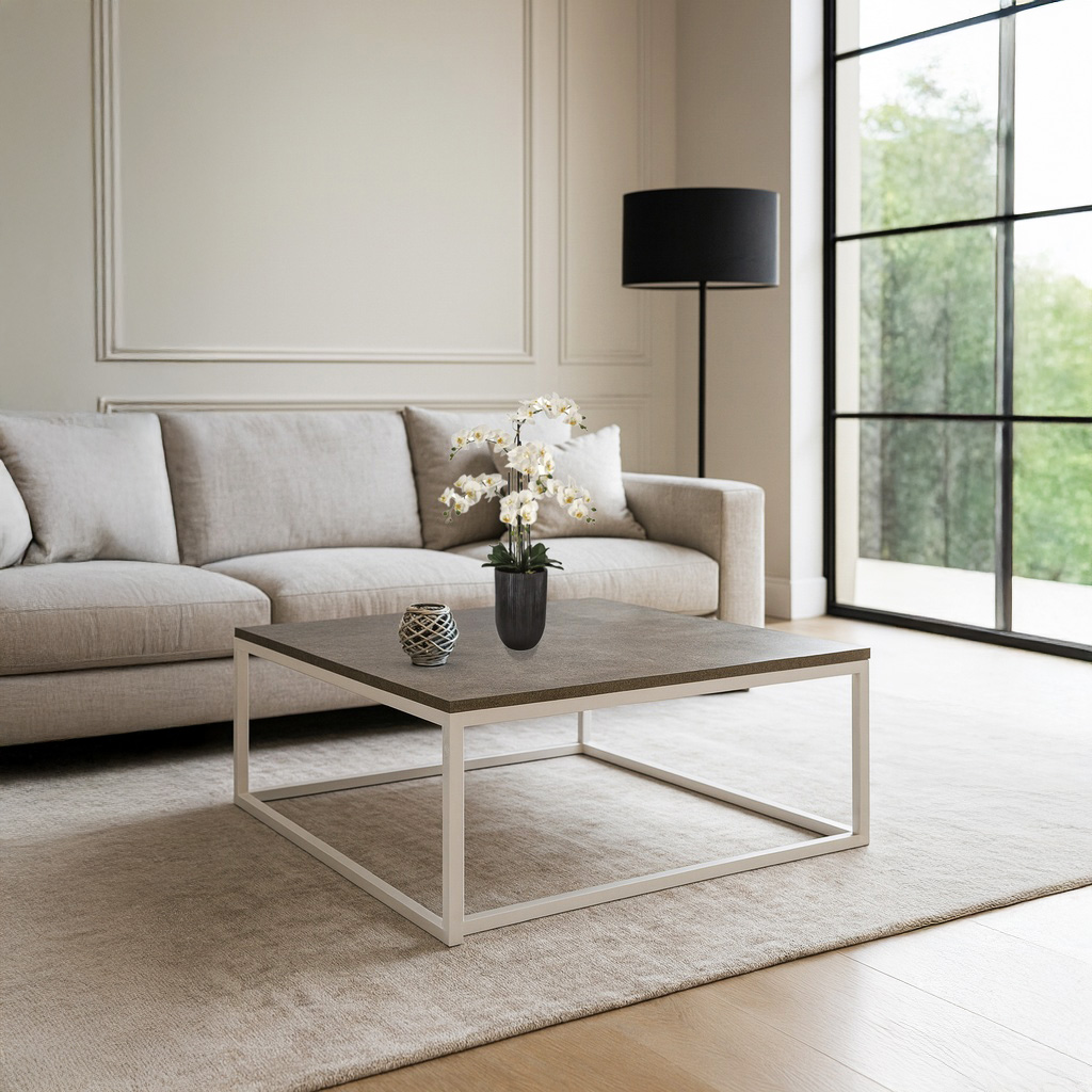 Το τραπεζάκι σαλονιού Simply διαθέτει μοντέρνο και minimal σχεδιασμό που ταιριάζει σε κάθε σύγχρονο χώρο. Η επιφάνειά του είναι από υψηλής ποιότητας μελαμίνη τύπου τσιμέντο σκούρο, ενώ η βάση του είναι μεταλλική σε λευκή απόχρωση, προσφέροντας σταθερότητα και αντοχή. Ο τετραγωνισμένος σχεδιασμός του αναδεικνύει την κομψότητα και την απλότητα, καθιστώντας το ιδανική επιλογή για σαλόνια με μοντέρνο χαρακτήρα.
