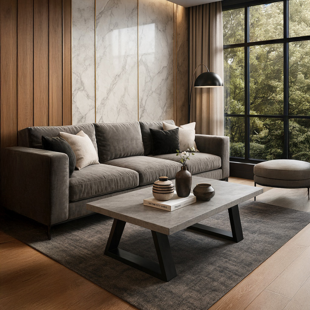ΤΡΑΠΕΖΙ ΣΑΛΟΝΙΟΥ TRIVIO ΜΕ ΜΕΤΑΛΛΙΚΟ ΣΚΕΛΕΤΟ & ΕΠΙΦΑΝΕΙΑ ΑΠΟ ΜΕΛΑΜΙΝΗ ΜΕ ΥΦΗ ΤΣΙΜΕΝΤΟΥ ΣΕ ΑΝΟΙΧΤΟ ΓΚΡΙ