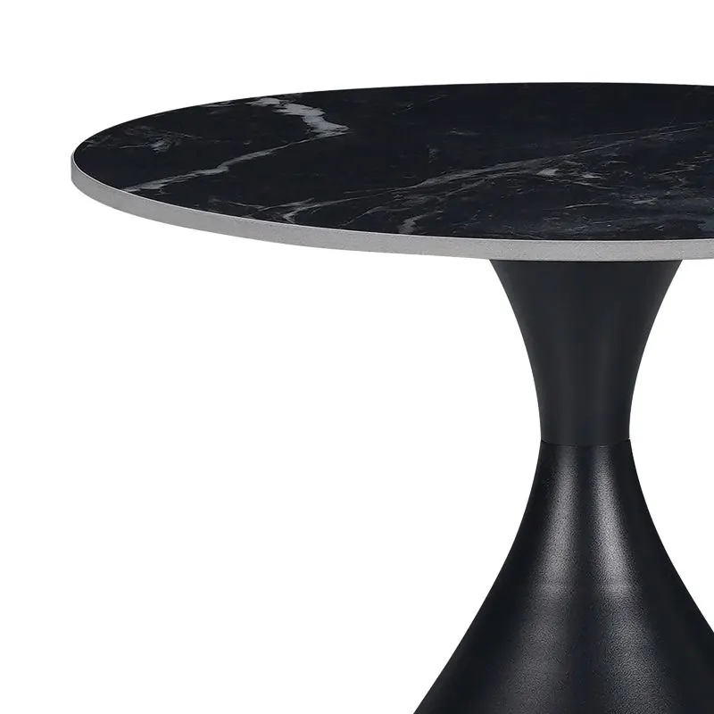 Βοηθητικό τραπέζι Kirkene sintered stone σε απόχρωση μαύρο μαρμάρου με μαύρο μέταλλο Φ50×50εκ