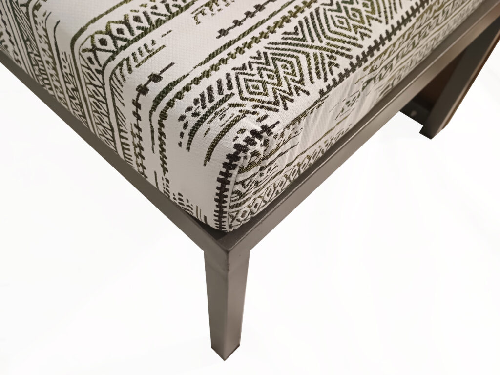 - Κάθισμα: Άνετο μαξιλάρι με σχέδιο σε λευκή βάση και μαύρα γεωμετρικά μοτίβα.
