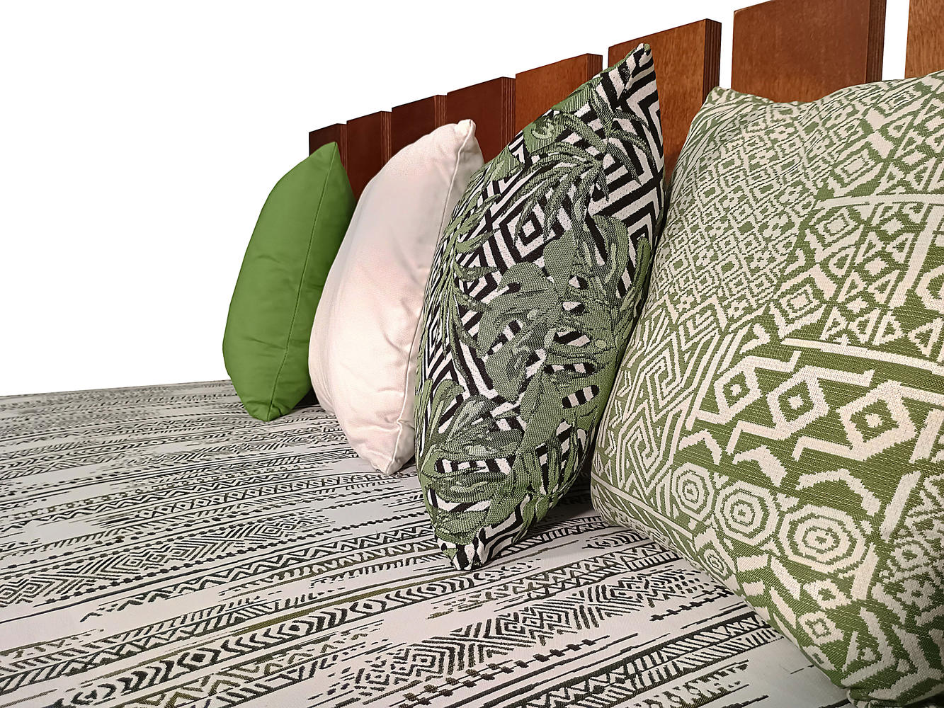 - Μαξιλάρια πλάτης: Περιλαμβάνονται 4 μαξιλάρια σε ποικιλία χρωμάτων και σχεδίων (πράσινο, γκρι, και δύο με μοτίβα σε αποχρώσεις του πράσινου).