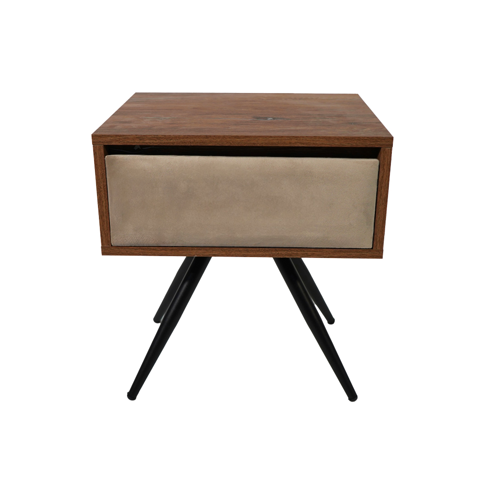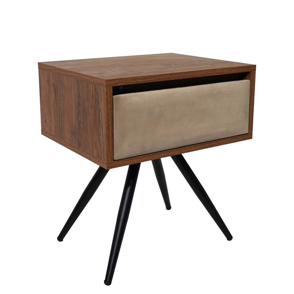 Κομοδίνο Komo-Arco συλλογής Spitimade by Moderno- Mε Ξύλινη Όψη, Μπεζ Υφασμάτινο Συρτάρι & Μαύρα Μεταλλικά Πόδια.