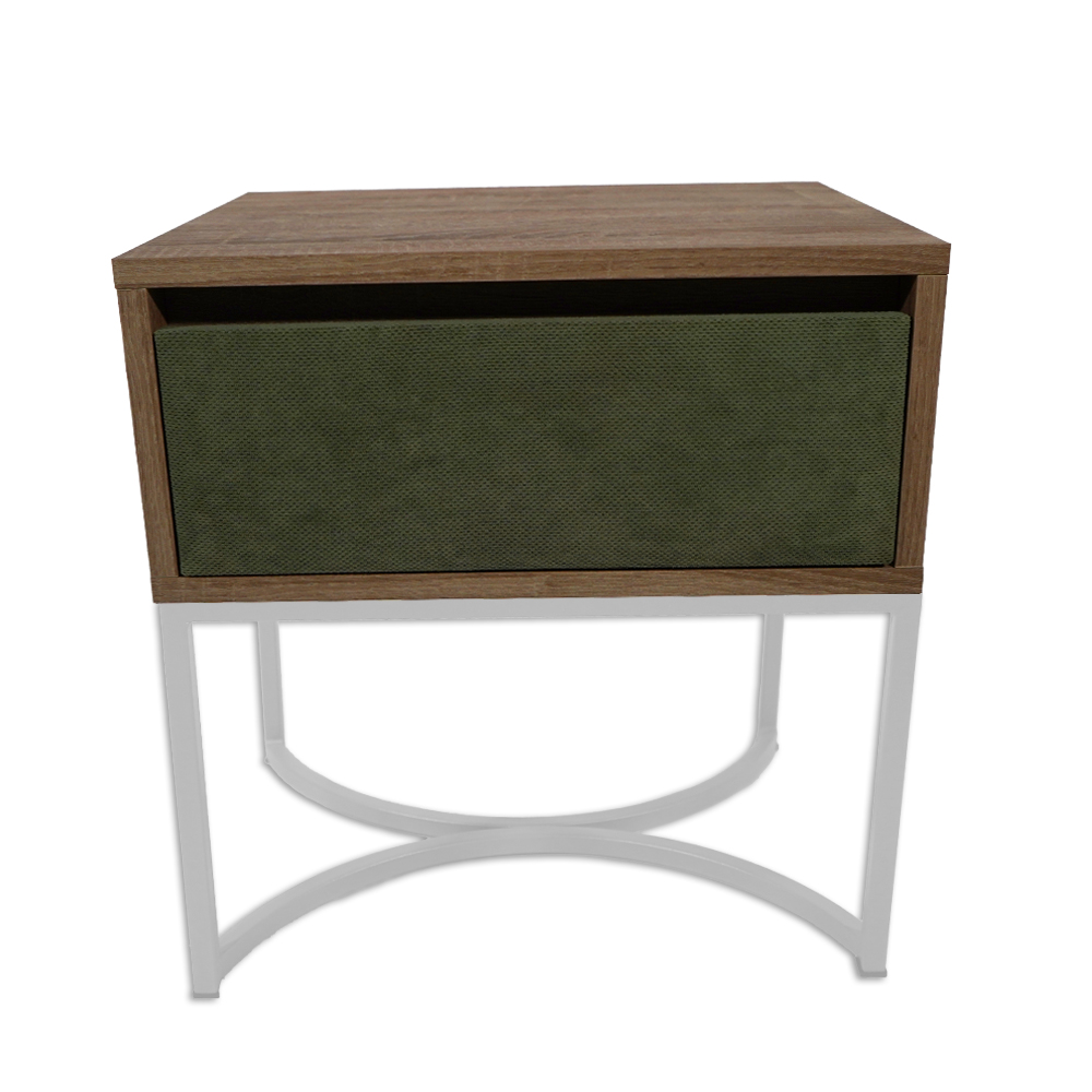 Κομοδίνο Komo-Arco συλλογής Spitimade by Moderno- Με Ξύλινη Όψη, Πράσινο Υφασμάτινο Συρτάρι & Λευκή Μεταλλική Βάση