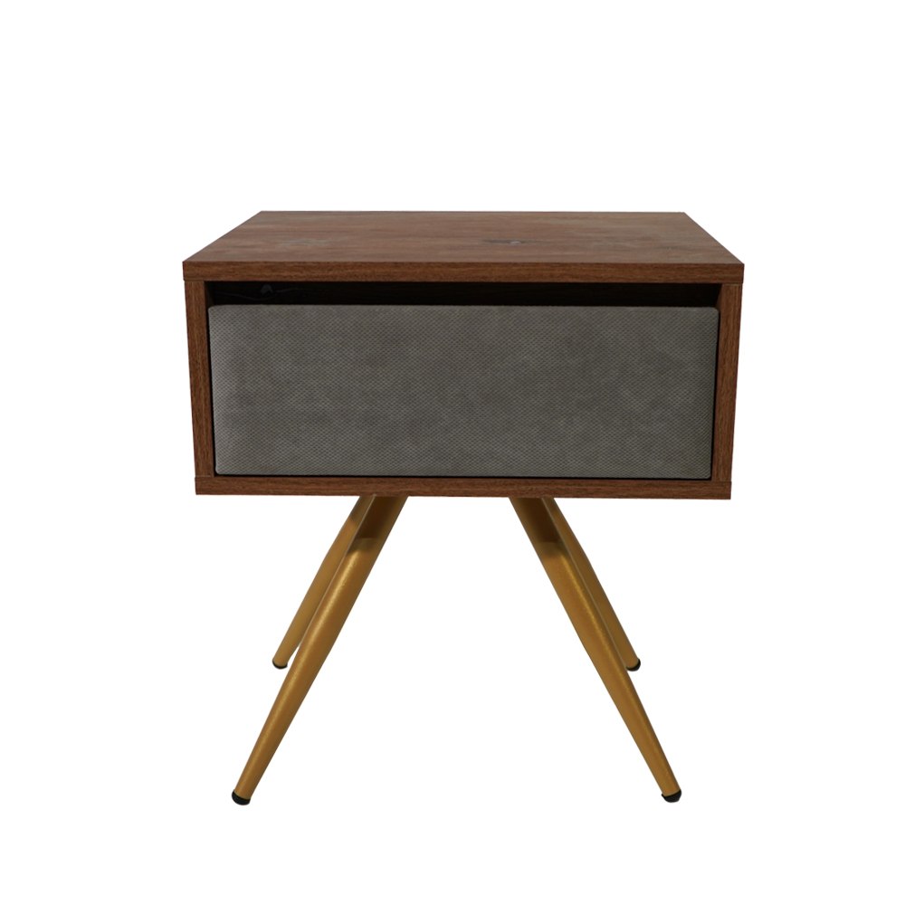 Κομοδίνο Komo-Arco συλλογής Spitimade by Moderno-Με Ξύλινη Όψη, Γκρί Υφασμάτινο Συρτάρι & Χρυσή Μεταλλική Βάση