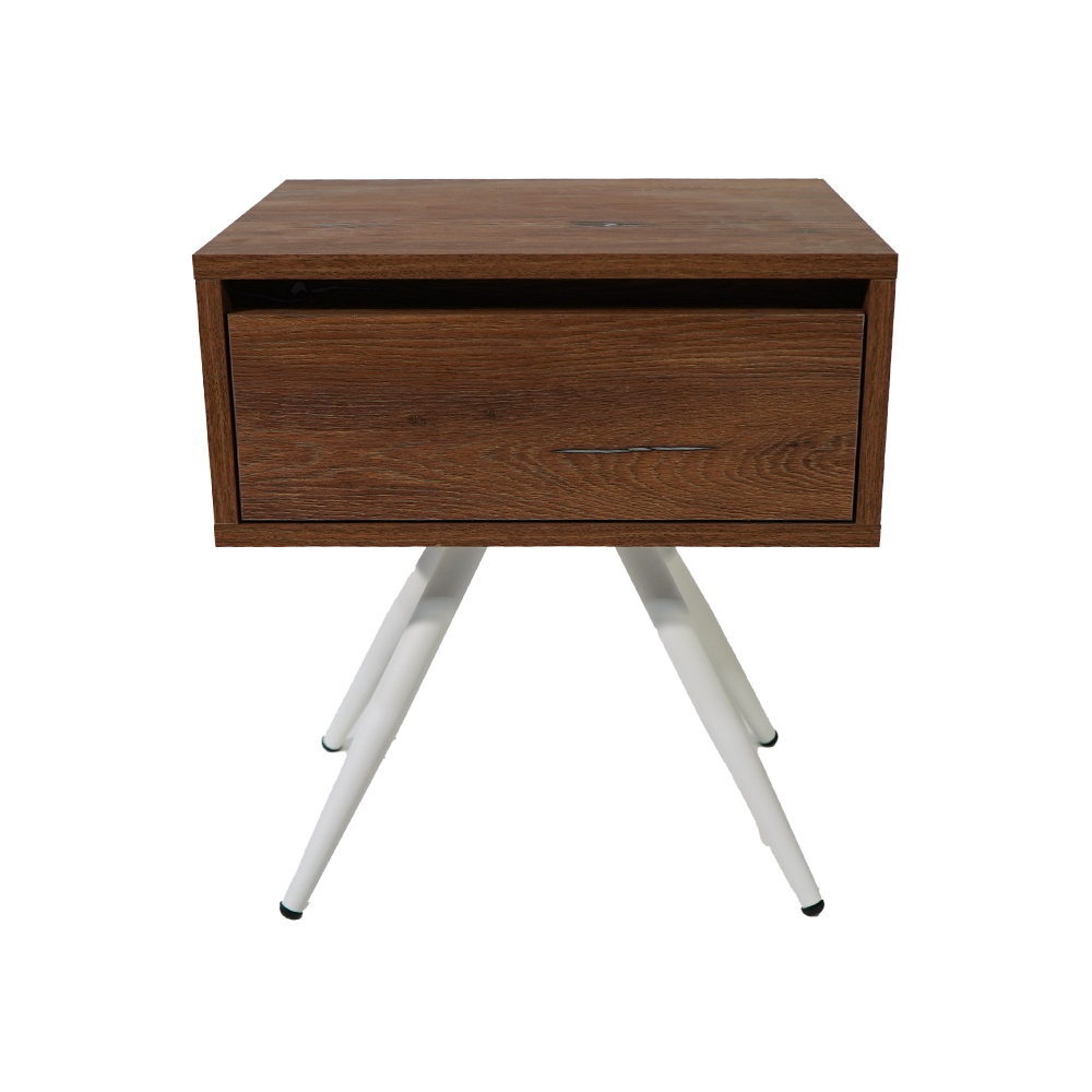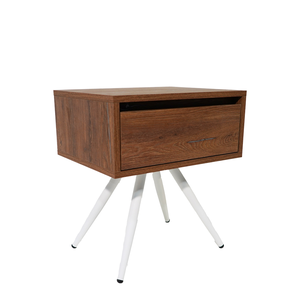 Κομοδίνο Komo-Νord συλλογής Spitimade by Moderno- Σε καρυδί Απόχρωση & Λευκά Μεταλλικά Πόδια