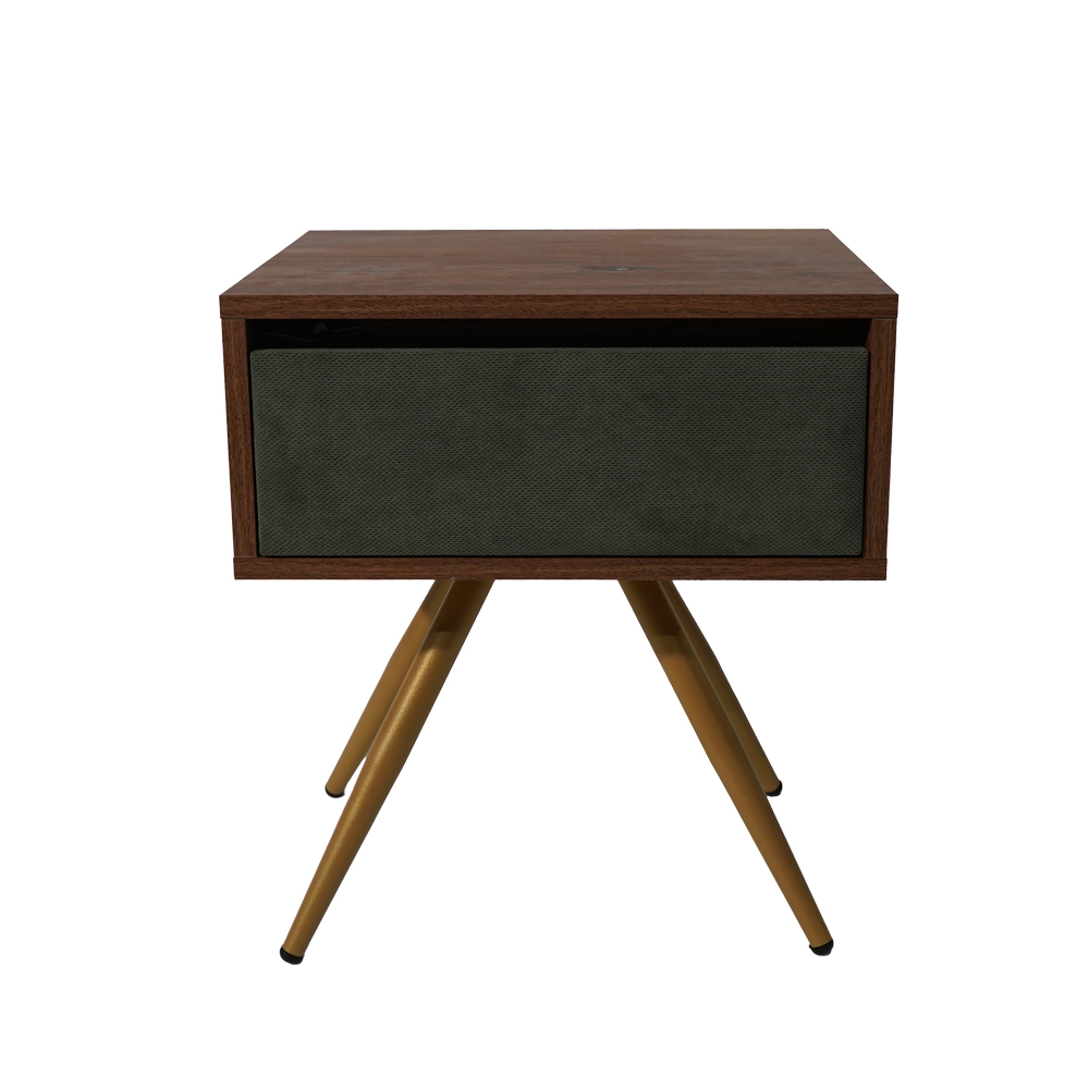 Κομοδίνο Komo-Νord συλλογής Spitimade by Moderno-Με Υφασμάτινο Πράσινο Συρτάρι & Χρυσά Μεταλλικά Πόδια