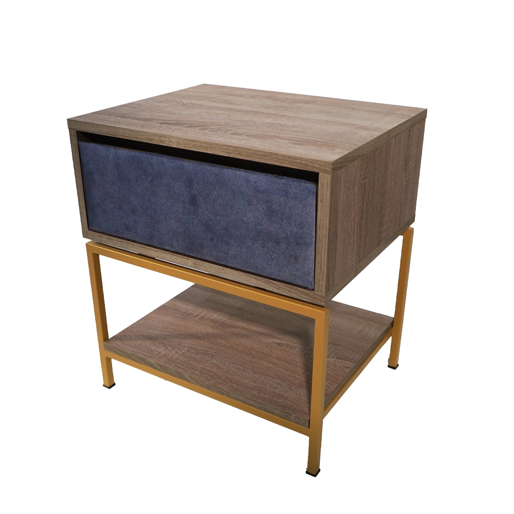 Κομοδίνο Komo-WoodTex συλλογής Spitimade by Moderno-Mε Υφασμάτινο Συρτάρι Σε Μπλέ Ράφ Απόχρωση & Χρυσή Μεταλλική Βάση