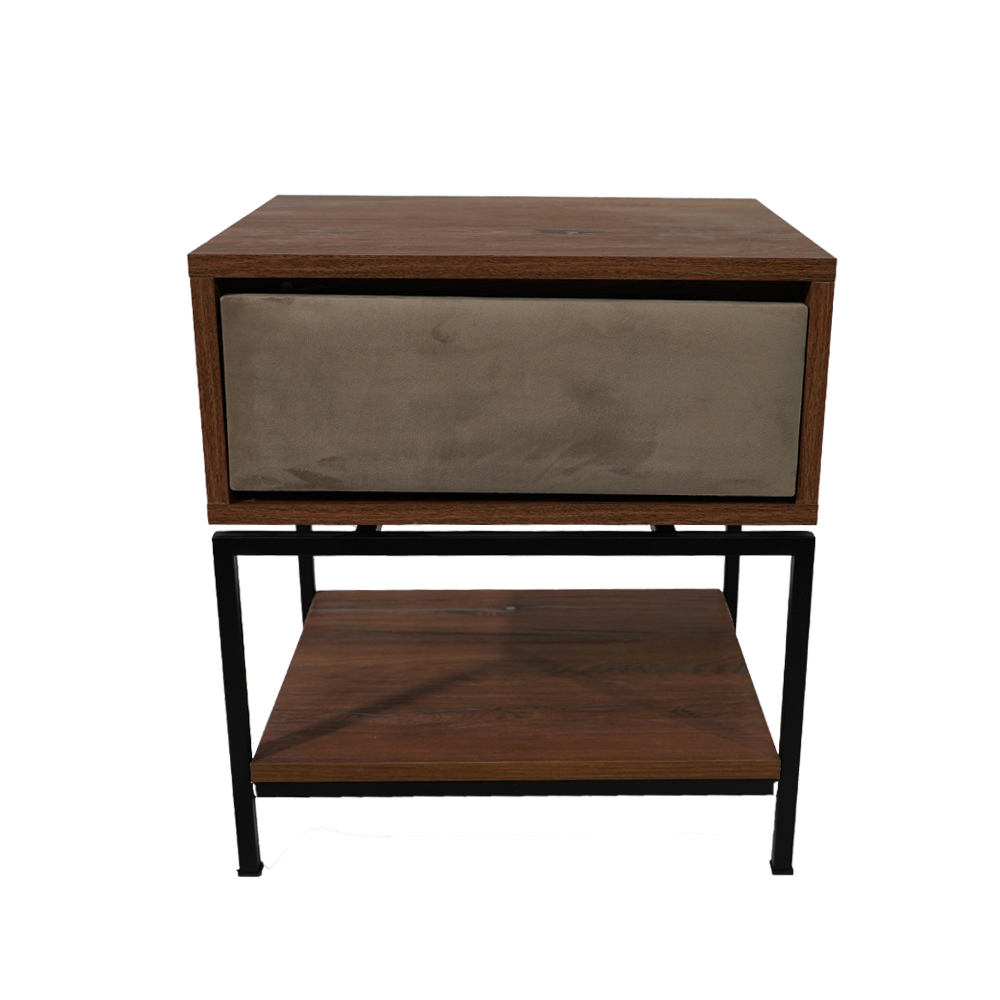 Κομοδίνο Komo-Woodtex με Υφασμάτινο Συρτάρι & Mαύρη Μεταλλική Βάση